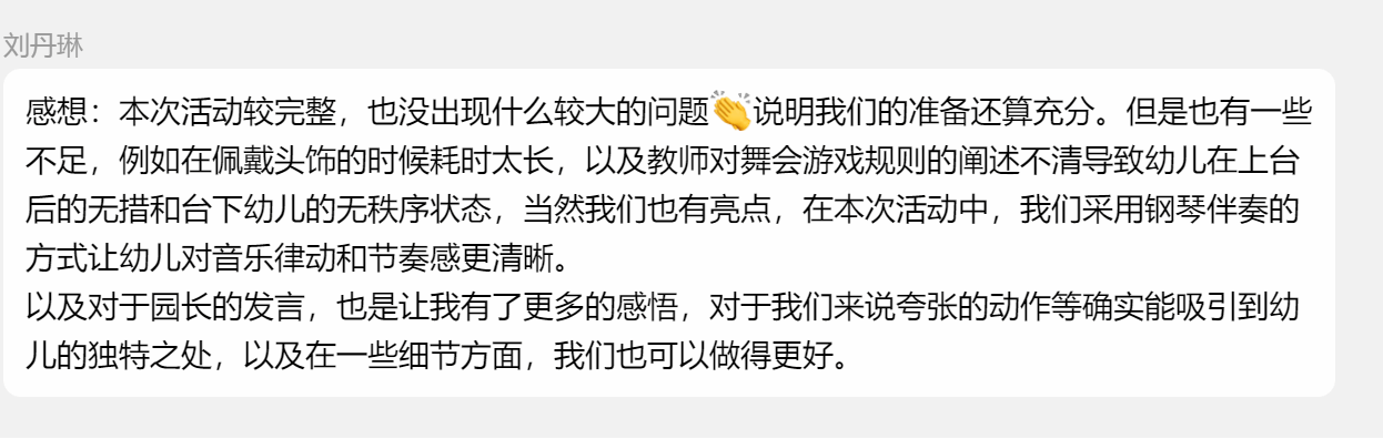 除了实践授课,教学研讨也是此次活动的重要内容。授课活动结束后,孝感市直属机关幼儿园园长与员工们进行了深入的教学研讨,提出了很多具有指导意义的建议,员工们纷纷表示收获满满,此次见习不仅了解了幼儿教育的实际需求,也进一步提高了自己的教学水平和专业素养。