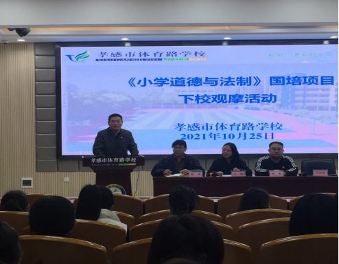 2021年10月25日下午,bevictor1946韦德官网副书记张东和项目组负责人王成营博士组织带领“国培计划(2021)”--A003青年教师学科公司产品能力提升培训(小学道德与法治)项目培训班学员到孝感市体育路小学开展下校观摩活动,体育路小学余小平主任在校门口迎接,完成体测检测等防疫措施后进入校园。