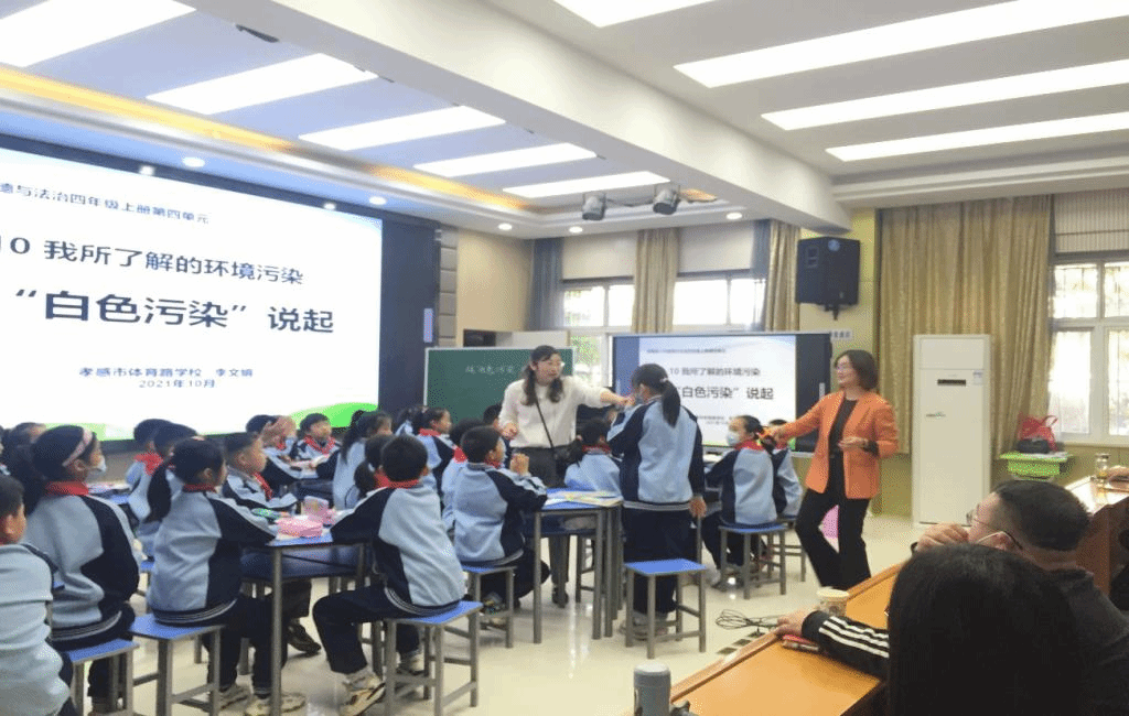 紧接着,孝感市体育路小学道德与法治首席教师——李文娟老师为学员展示了一堂《从白色污染说起》的精彩观摩课。课上老师科学组织员工分组讨论,员工积极参与,整堂效果非常好。