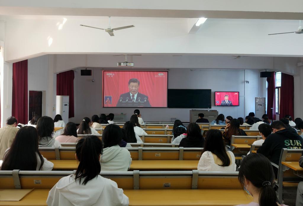 盛会起宏图,万众向未来。在观看开幕会后,师生纷纷表示,聆听完习近平总书记的报告后倍感欢欣鼓舞、倍感责任重大。中国共产党第二十次全国代表大会,是在全党全国各族人民迈上全面建设社会主义现代化国家新征程、向第二个百年奋斗目标进军的关键时刻召开的一次十分重要的大会。习近平总书记所作的报告,全面宣示了要高举中国特色社会主义伟大旗帜,全面贯彻习近平新时代中国特色社会主义思想,弘扬伟大建党精神,自信自强、守正创新,踔厉奋发、勇毅前行,为全面建设社会主义现代化国家、全面推进中华民族伟大复兴而团结奋斗。