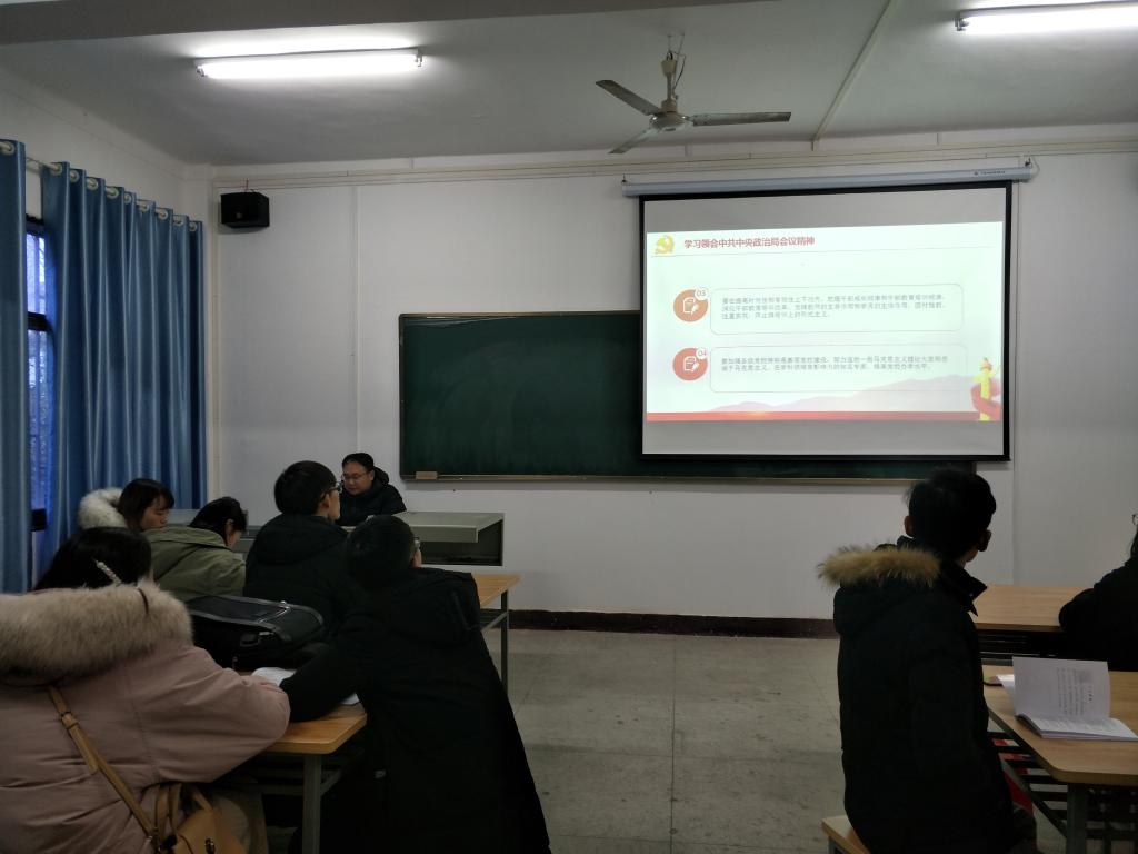 2018年12月27日下午14:00,bevictor1946韦德官网员工党支部在教育楼202教室开展了12月主题党日暨书记上党课。活动由辅导员袁野主持,党总支副书记张东主讲,参与人员包括辅导员华丽和全体在校员工党员。
