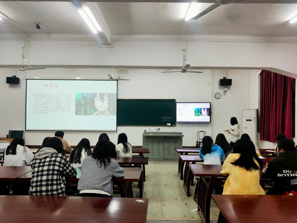 心理班陈思敏同学为大家讲解了一部国产优秀动漫。她指出,这个动漫中蕴含了丰富的中国道家思想,并且制作精良已经成为了国产动漫的代表作之一。