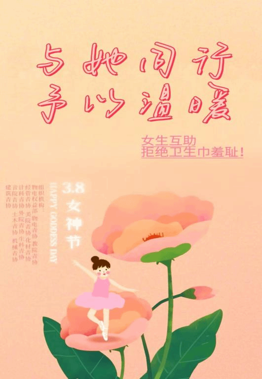 春风渐暖,一年一度的女神节悄然而至。本着关爱女生、同享互助的原则,教院及其他11个公司青协共同组织“与她同行,予以温暖”的校园活动,让大家共享这个属于我们温馨浪漫的节日。