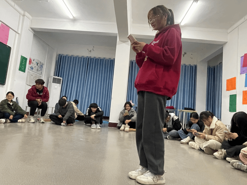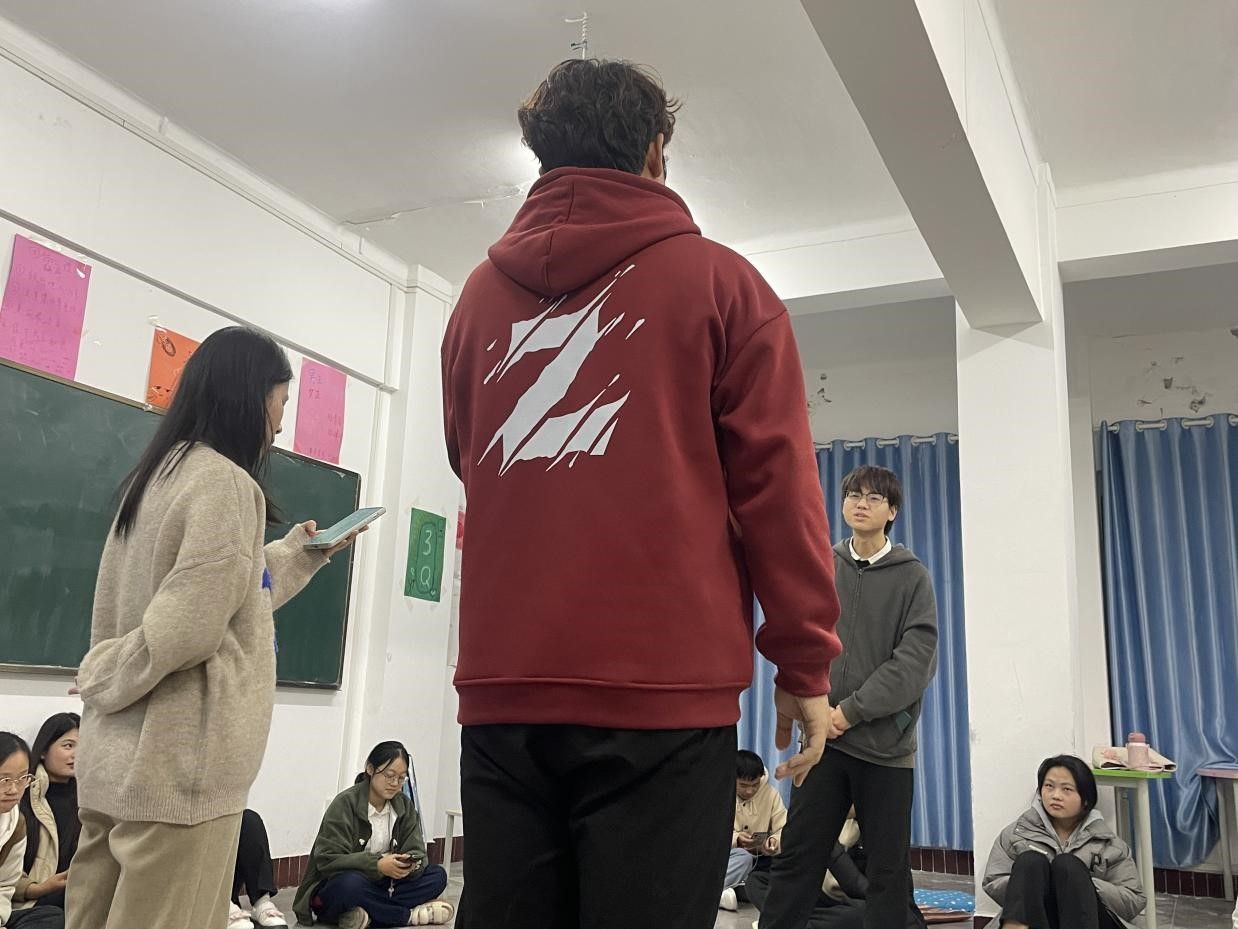 活动现场气氛热烈,参与的同学都沉浸在欢乐的游戏中。首先进行的是“听歌认识你”游戏,同学们不仅通过听歌曲猜歌名的方式相互认识,还增加了彼此之间的交流。接着是“正话反说”游戏,该游戏考验了同学们的逆向思维和语言表达能力。最后进行的“你描我猜”游戏更是将活动推向了高潮,同学们通过描述和猜测物品名称的方式培养了双方的默契和信心,增强了团队合作精神和集体荣誉感。