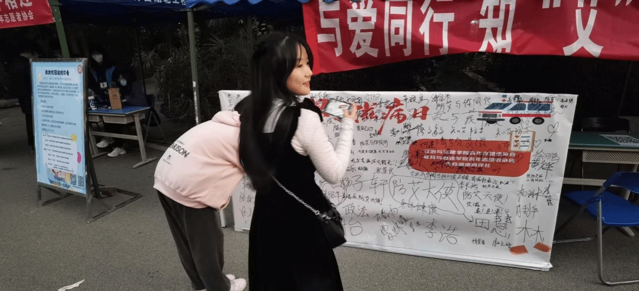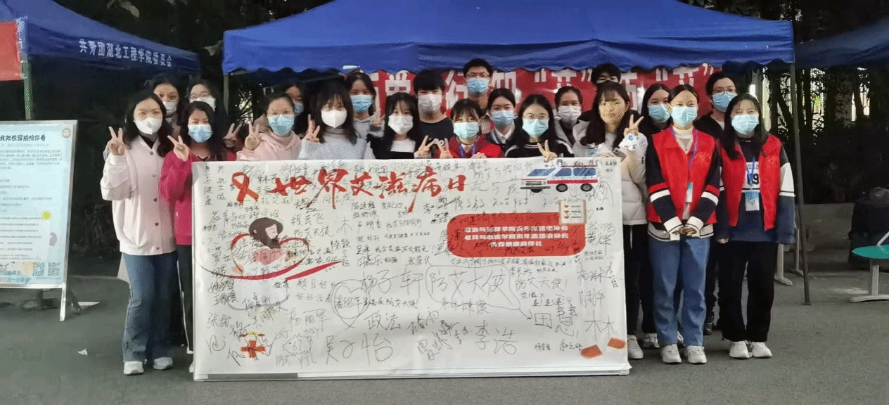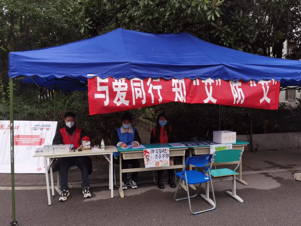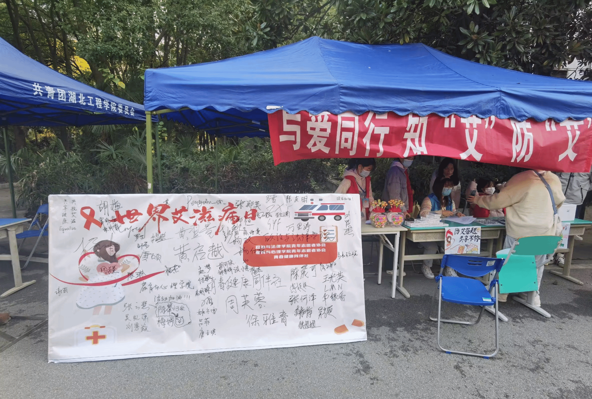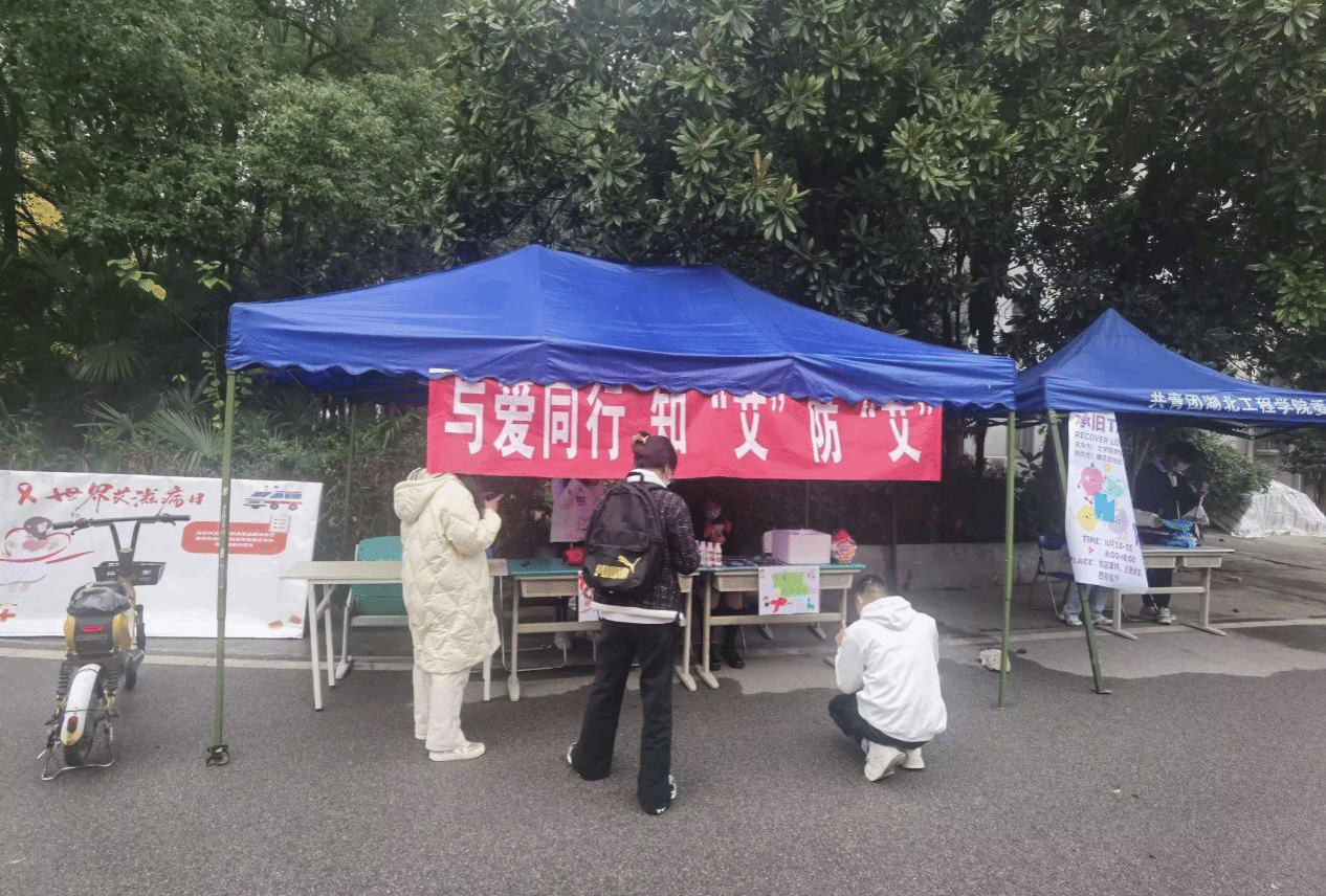 公司青协与政法青协2022年11月25日在三里、西苑餐厅门口进行摆点宣传与爱同行,知艾防艾活动(外加青春同伴社的赞助以及国教、建院青协的物资扶持)