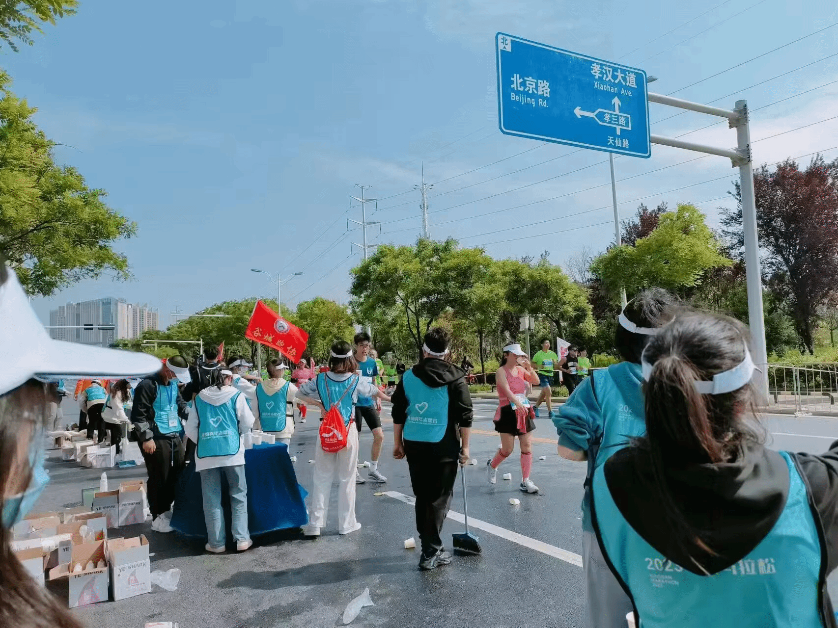 5月7日7时30分我们在孝感市文化中心举办了第一届孝感市马拉松比赛,来自五湖四海的友人们在这一天集聚于此,澴城如画,人群似海。在赛场上,我们的志愿者们不断为参赛员们加油鼓气,热情的欢迎友人们的到来