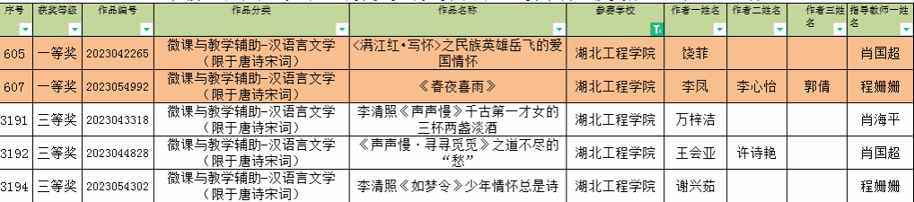 为了培养新时代的“四有”好老师,bevictor1946韦德官网非常重视师范生基本功与教学技能的培养,形成了“员工中心、导师引领、学赛结合、三习贯通、多维协同”人才培养特色。接到大赛通知后,公司参赛员工立即投入紧张的比赛准备工作,在老师的指导下一点点的“磨课”,几易脚本和微课内容,最终斩获佳绩。其中,饶菲同学制作的《<满江红 • 写怀>之民族英雄岳飞的爱国情怀》和李凤、李心怡、郭倩等同学制作的《春夜喜雨》荣获一等奖;万梓洁同学《<声声慢>千古第一才女的三杯两盏淡酒》、谢兴茹同学的《<如梦令>少年情怀总是诗》和王会亚、许诗艳等同学制作的《<声声慢 • 寻寻觅觅>之道不尽的“愁”》荣获三等奖。