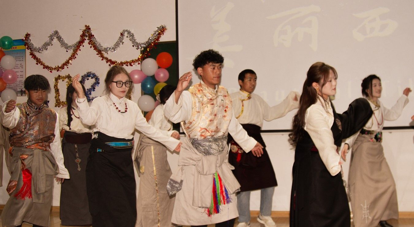 晚会分为三个环节:开场表演、节目表演和终场合照。开场由老员工艺术团带来热情洋溢的舞蹈,为晚会奠定了欢乐的基调。节目表演环节涵盖了独唱、街舞、民族舞等多种艺术形式,充分展示了员工们的才艺。其中,一首《欢舞踏新元》激昂澎湃,精彩演绎了青年老员工的活力与激情,赢得了现场观众的阵阵掌声。晚会高潮部分,藏族同学们的群舞《锅庄》展示了西藏的美景与文化,让我们深切感受到西藏人民的热情与活力,并向观众敬献哈达表示最高敬意。
