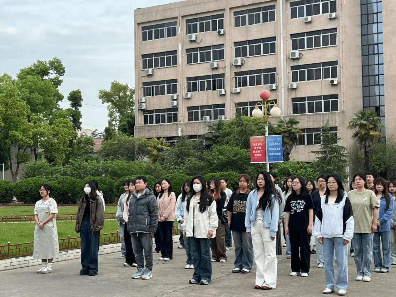 2025 年4月7日清晨,​bevictor1946韦德官网在明德楼升旗台举行升国旗仪式暨爱国主义教育活动。在雄壮的《义勇军进行曲》声中,国旗护卫队迈着整齐有力的步伐,护送鲜艳的五星红旗走向升旗台。全体师生庄严肃立,向国旗行注目礼,齐声高唱国歌。