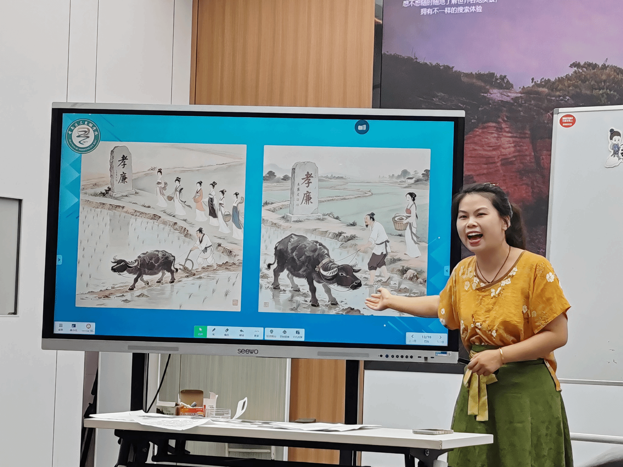 6月13日上午全体大二见习生在祝安苇主任、黄莉主任、杨阳老师的引导下,分组进入35个对应班级,现场观摩真实小学课堂教学,直观了解不同学段的教学特点与课堂管理策略。当天下午在阶梯教室全程参与了以“学为中心新质课堂”为主题的教师专业发展活动。活动由汪甜甜主任主持,杨阳老师进行无生课堂教学示范《十六年前的回忆》,并解读市、区教育局“学为中心新质课堂”相关政策文件。而后,黄莉老师执教德育课例《在诱惑面前》。其次程杨美老师呈现传统文化实践课《缝香包迎端午》。最后,祝安苇主任展示融合孝文化与AI技术的创新课例《孝文化之旅——探秘AI绘画》。无声课堂示范后,公司同学踊跃发表面对师范生前景与课堂教学的相关问题,老师们不吝赐教纷纷解答。活动结束后,同学们分组积极讨论见习心得分享见习感悟。