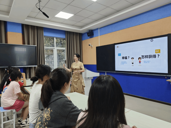 随后,吴艳园长围绕“职业幸福感”展开分享,用一个个鲜活的教育故事,让新生感受到幼儿教师职业的独特魅力。“爱是教育的基础,更是教育的源泉。”她反复强调这句话,并用自己经历的小事举例:有个刚入园的孩子因分离焦虑每天哭闹,她坚持每天早上蹲下来给孩子一个拥抱,耐心听孩子说“不想妈妈走”,两周后孩子主动拉着她的手走进教室;有个内向的孩子喜欢用画画表达想法,她特意准备了“绘画日记”本,每天和孩子通过图画交流,慢慢帮孩子打开了心扉。“这些瞬间,比任何荣誉都珍贵。”吴艳园长笑着说,她还分享了孩子们的“可爱日常”:有孩子把捡到的小石子当成“宝石”送给老师,说“这能让老师永远开心”;有孩子在角色扮演游戏中,认真地对“小病人”说“别怕,我会像吴老师一样照顾你”。这些充满童真的片段,让教室里不时响起会心的笑声,也让新生们真切感受到——幼儿教师的幸福,藏在孩子的每一个笑容里,藏在见证孩子点滴成长的成就感中。